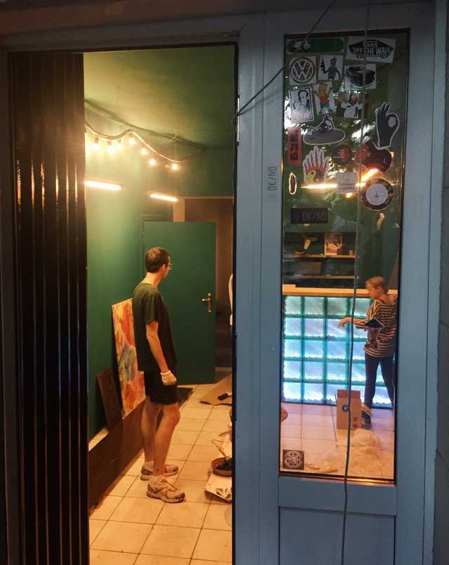 Саша: Ми розуміли – ліцензії у нас поки що немає, а час йде, і ми все пофарбували. Вже немає сил терпіти, треба робити вечірку. Ми купили багато пива і запросили сюди друзів та їхніх знайомих. Це не був Facebook-івент, а просто вечірка для своїх. Але люди приходили і приходили – їх стало понад шістдесят, вони заполонили весь двір. У якийсь момент стало дуже страшно – ми втрьох були просто в агонії.