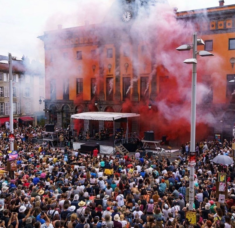 На відкритті одного з найбільших театральних фестивалів Європи d`Aurillac ми зробили так, щоб промова мера перервалася сиреною й із самої будівлі мерії почав валити червоний дим: мерія ніби спалахнула. Тоді зазвучали кілька композицій Dakh Daughters, а серед публіки артисти від звуку сирен почали падати долілиць прямо на площі. Наша артистка Соломія Мельник зачитала монолог, і, поки звучав цей текст, українські жінки-біженки з дітьми, а також французькі акторки в плащах-дощовиках, з паперовими рюкзаками й саджанцями дерев пройшли крізь натовп. Паперові рюкзаки були, як будиночки, з віконцями. Це була дуже пронизлива історія. Після цього дійства ми розбили сквер пам’яті й надій України. Символічно висадили одразу одне дерево, бо була спека, а в листопаді тут посадять решту дерев, щоб утворився сквер.